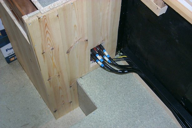 June 2007 The other side of the patch panel (which is now hidden under the kitchen worktop). Decided to use high quality Suhner coax for the RF feeds.