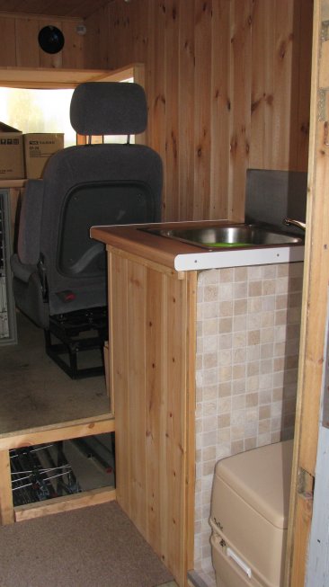 February 2011 The ultimate luxury - 120 litres of fresh water tank installed over the axles, connected to an electric pump - no more lugging bottles of water around site!