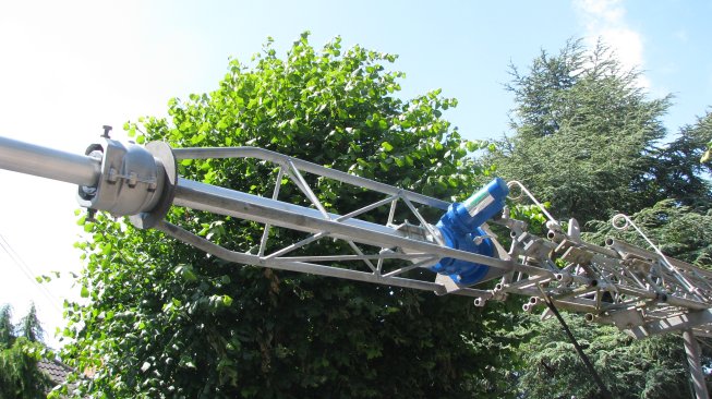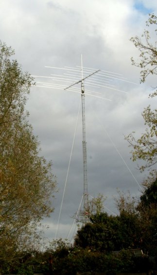 The mast is currently used to support our 2m array, consisting of 4 x 11 element Pro Tonnas. Next year we hope to be entering some HF contests too and Vincent will then be adorned with an Optibeam OB11-3.