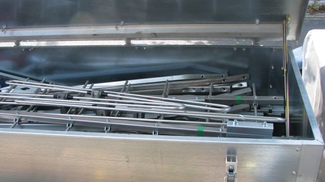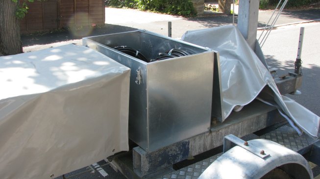 | The long box at the front stores all the antennas - no more fiddling around with a roof rack - yippee! | The rear box keeps all the Ecoflex15 coax safe. | |